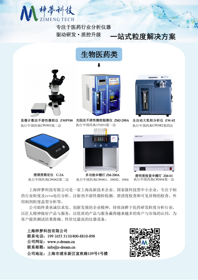 在A09展位,梓夢科技將攜帶設備外用制劑粒度分析儀ZML310、澄清度、可見異物檢查專用傘棚燈ZM-200A進行參展。梓夢科技針對當前創新藥研發的核心難點,提出針對性技術解決方案,驅動企業創新發展,提升企業質控升級效率。